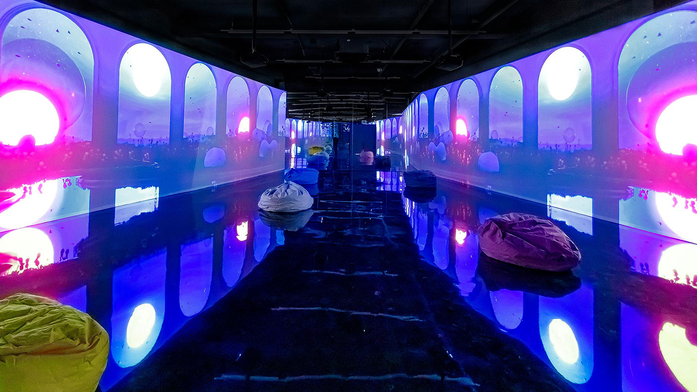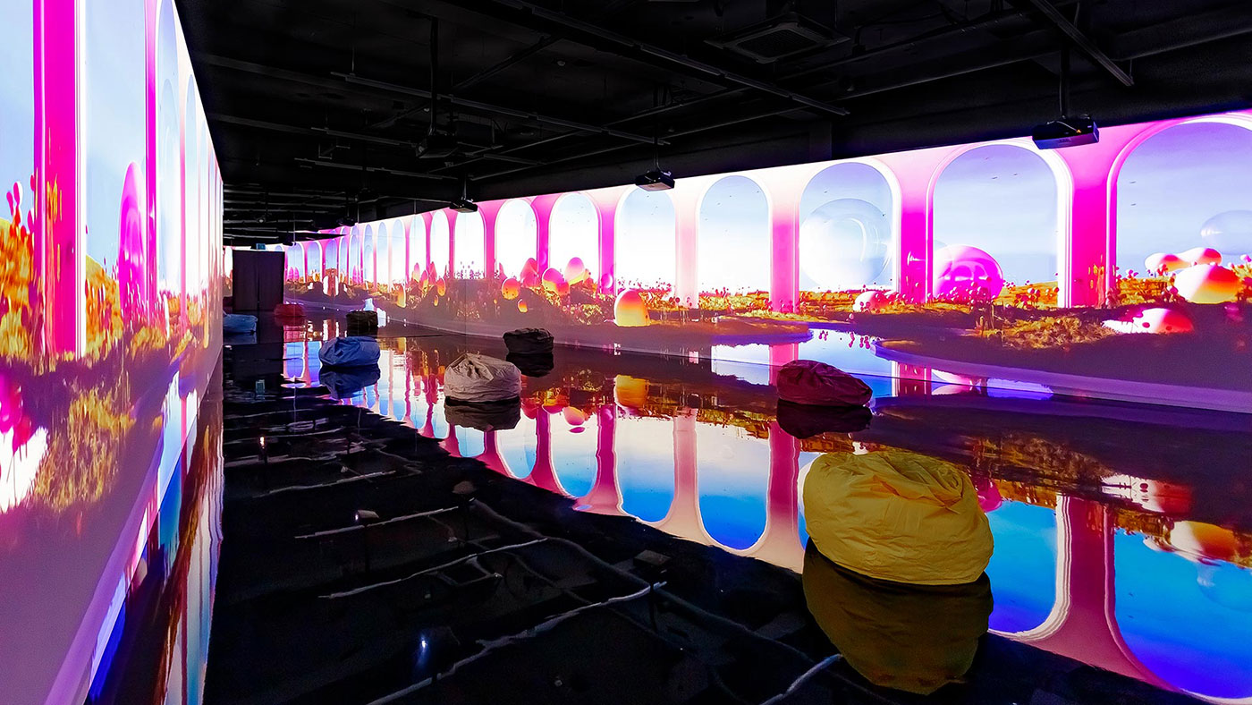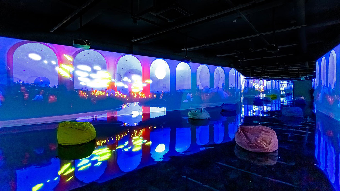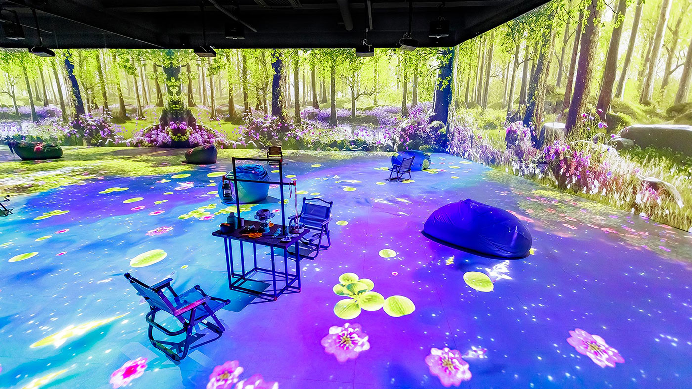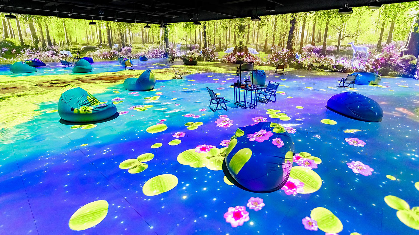 2층데이나잇 포레스트밝은 해가 비치면 강릉 숲 속의 동물들이 뛰어노는 3면영상과 통나무를 움직여 숲 속 수로를 만드는 체험물 연출데이나잇 사진모음갤러시 스토리우주 탐사선을 타고 우주로 들어가 우주인이 설명해주는행성의 이야기를 들어보는 서클 영상 연출갤러시 사진모음드림 비치강릉 앞 바다의 모래사장을 모티브로 실제 파도가 밀려드는 듯한 몰입형 영상과 모래 놀이터 연출 드림비치 사진모음